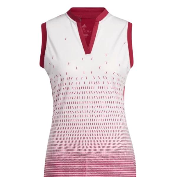 Elevate your look on the links in this adidas golf polo shirt. The lightweight fabric is made with moisture-absorbing AEROREADY to keep you dry. The sleeveless design has a V-neck collar and shaped hem for feminine style. A gradient graphic adds the finishing touch.