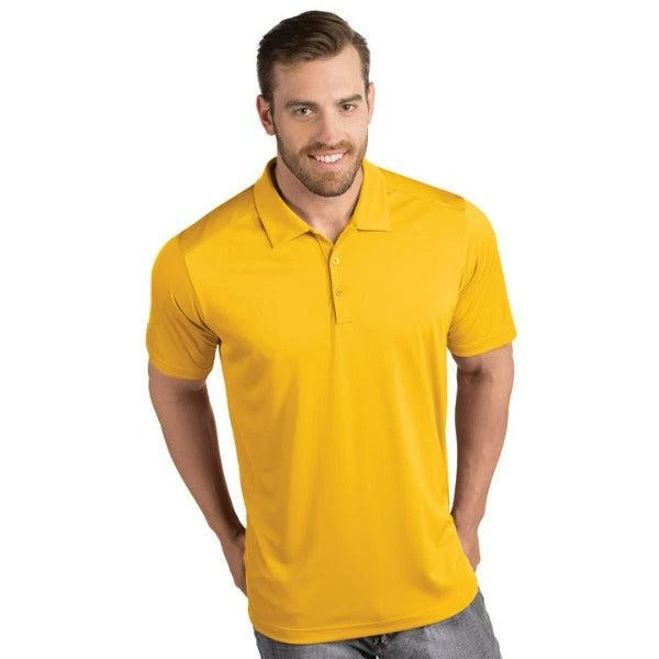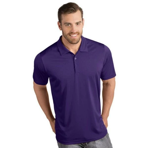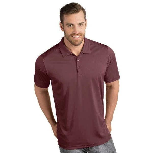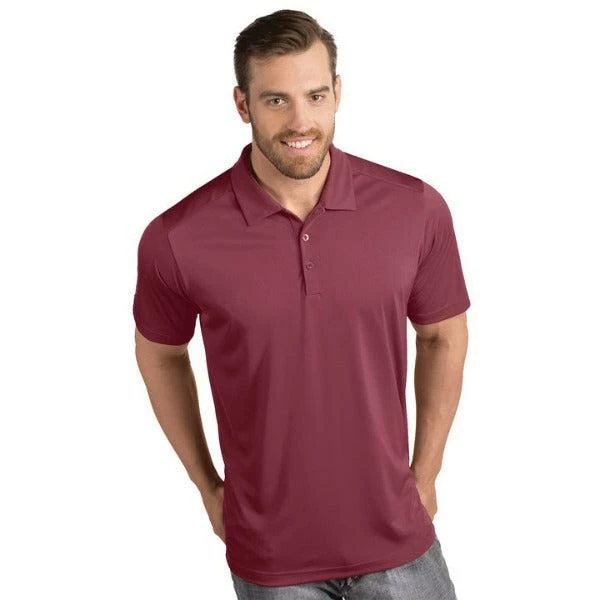 Gear up to make a statement with this sophisticated, high-performance staple. The fitted Tribute uses our quick-dry technology, 4-way stretch fabric, and UPF 55+ sun protection to keep you comfortable while braving the elements. This interlock knit polo has a self-fabric collar and narrow 3-button placket, and also sports open cuffs and side slits to maximize your comfort all day long. 100% polyester, with an Antigua patch on the right cuff.