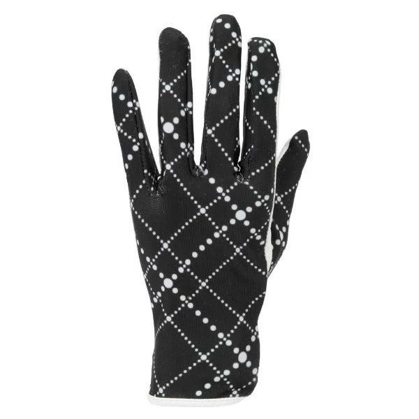Take hold of your new records with style and poise in the Nancy Lopez Full Finger Juicy Plaid Golf Glove. This sports glove is made with a lightweight, cool comfort stretch spandex that allows the skin to stay cool and dry, for ultimate breathability and comfort. Its soft, premium sheepskin cabretta leather palm ensures a soft, comfortable feel and a consistent, durable grip with every swing. The UV 50+ sun protection fabrics provide the ultimate coverage and protection from the sun’s harmful UV rays out on the course. Available in a range of vibrant colours and signature prints, this glove tailors to your game performance. Left-hand gloves are for right-handed golfers. Right-hand gloves are for left-handed golfers.