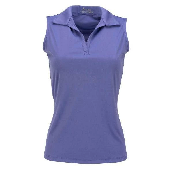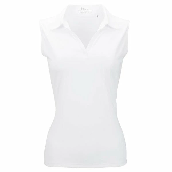 This polo is made using a 100% polyester for the most comfortable, versatile piece of sportswear. The self-collar with open v-neck presents an attractive, sleek look for the female golfer. Using DeLux Dri® Moisture Wicking Technology, the lightweight, micro pique fabric will keep you cool and dry from the first tee to the final green. Its gentle, sleek texture makes for an ideal fit and poise while breaking a sweat on the course. With the signature Lopez flame icon embroidered at the right hip, this polo boldly highlights the golfer as she conquers the eighteen holes. Women’s Legacy Sleeveless is the perfect choice to pair with any single-coloured or printed golf bottom.
