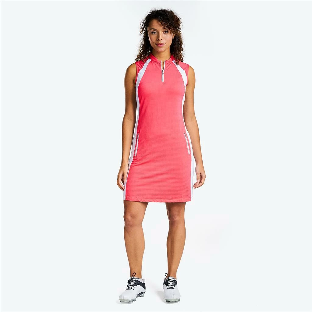 This beautiful golf dress from NVO is ideal for summer days because of its cooling and breathable properties that allow air to circulate and its antimicrobial properties that inhibit the growth of bacteria. It also protects you from the sun’s harmful rays with its UPF 50+ sun protection. In addition to comfort and functionality, the Lily dress from NVO is designed with a sidewall pattern that gives you a distinctive fit that will give you confidence on the golf course.