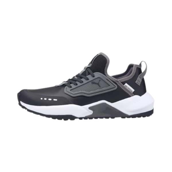 Each of the individual parts comprise to create the ultimate Golf System – the outsole provides traction, the midsole provides comfort, and the upper provides support and also progressive style that includes some lifestyle elements like the suede toecap, ripstop toybox, and leather heel with FOT PUMA logo.